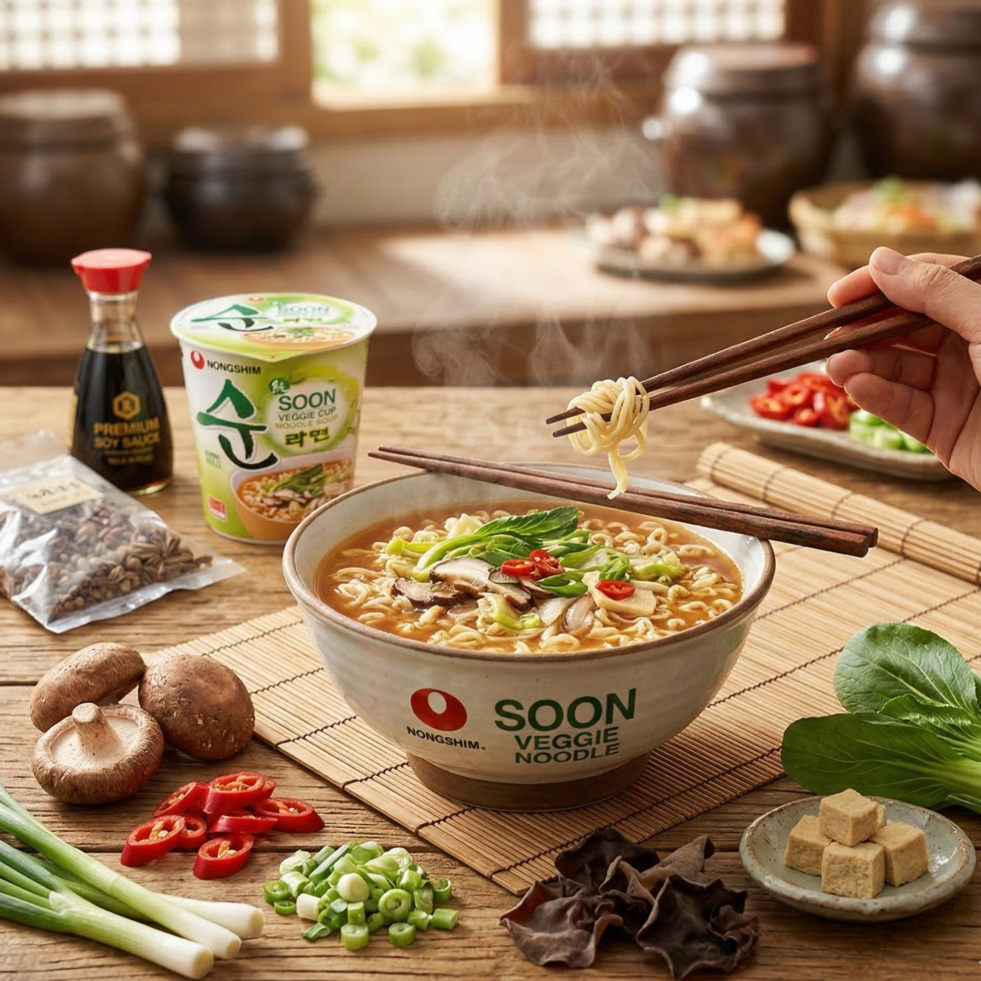 A rendkívül ízletes Nongshim Soon Veggie Ramen leves 100% vegán alapanyagokból készült. Az ízletes zöldségleves adta egyszerű, mégis gazdag ízvilágú amelyet még a húsimádók kedvére is tesz. Enyhén csípős, MSG mentes, transz zsírt nem tartalmaz. Soon Veggie Ramen Leves vegán hitelesített leves, így a legszigorúbb vegán diétával rendelkezők is bátran fogyaszthatják.