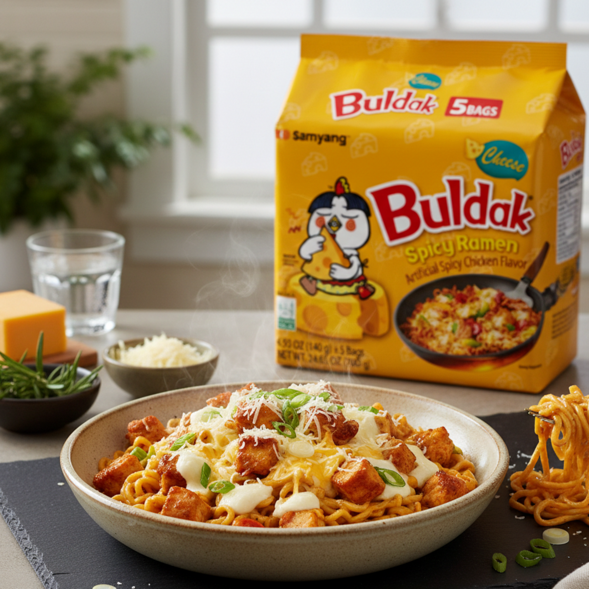 5 bucăți de tăiței de pui Samyang Buldak cu aromă de brânză 140 g