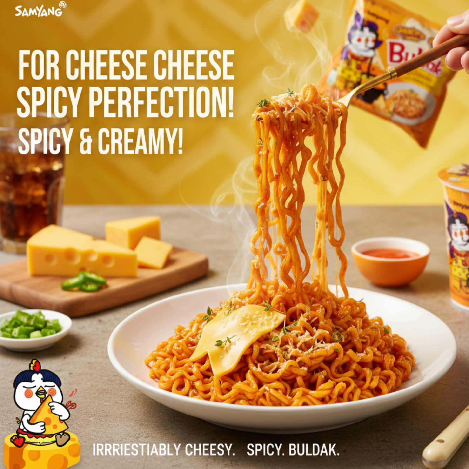 Tăiței de pui Samyang Buldak cu aromă de brânză 140 g