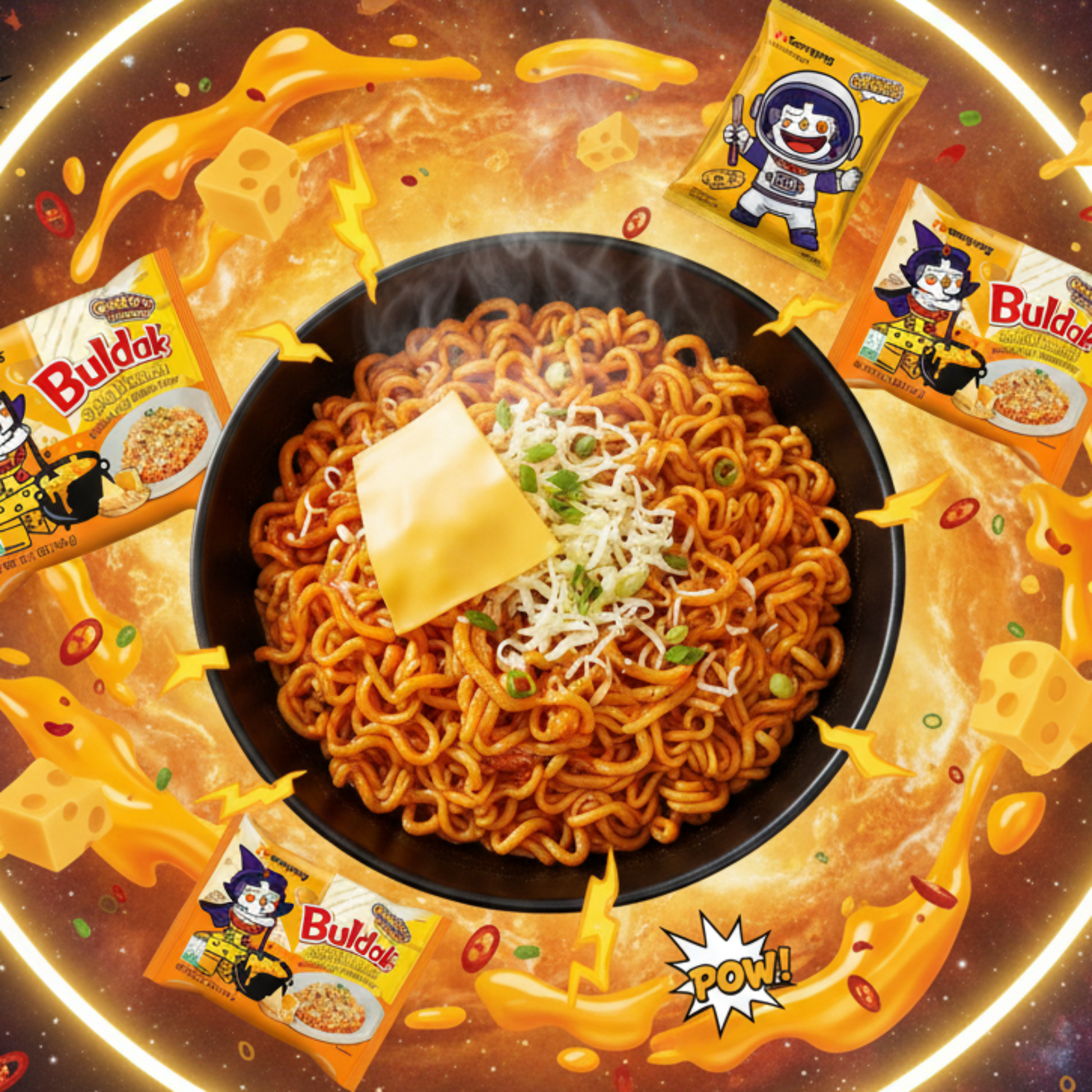 5 bucăți de tăiței de pui Samyang Buldak cu aromă de brânză 140 g